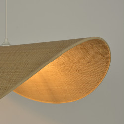 Cette grande suspension aux larges bords s'appelle la capeline car elle rappelle les grands chapeaux de paille pour femmes. Avec son textile naturel et ses bords arrondis, la capeline est un chapeau qui s'est largement imposé au fil des siècles pour devenir un incontournable.