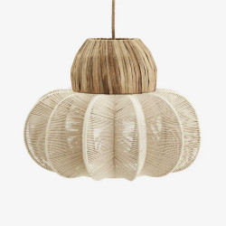 Craquez pour cette nouveauté de chez Madam Stolzt pour illuminer une chambre ou un salon avec élégance. Cette suspension à la ligne innovante fait penser à une fleur avec ses pétales en cordes de coton beige et un cœur en fibres naturelles. Cette suspension d'intérieur est toute douce avec ses couleurs à la fois claires et chaudes.