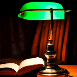 Intemporelle la lampe banquier verte a toujours sa place sur un bureau. Son pied typique et son abat-jour en verre vert apportent une ambiance de sérénité et de sérieux à un espace de travail. Son verre orientable en fait un outil indispensable pour travailler à son aise.