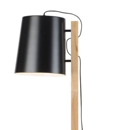 La base et l'abat-jour en métal apportent une touche industrielle, réchauffée par la structure en bois de frêne.