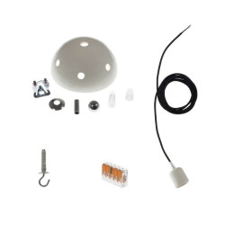 • 6 chevilles avec crochet pour fixer le câble au plafond.